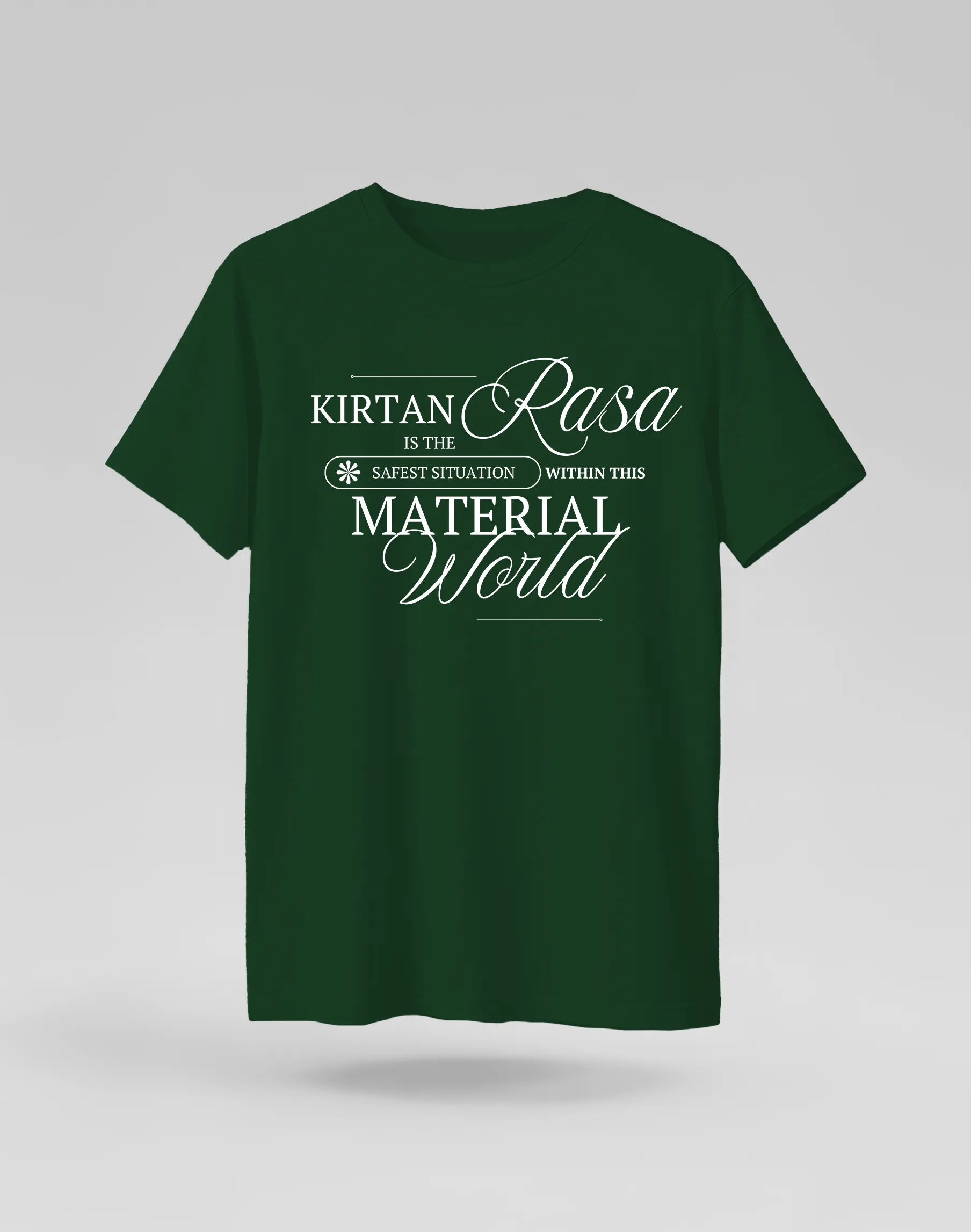 Experience divine comfort with our premium 100% cotton t-shirt, crafted from soft and durable 180 GSM fabric. This classic-fit tee features a unique design showcasing the phrase "Kirtan Rasa is the safest situation within this material world". Perfect for everyday wear, spiritual gatherings, or meditation, this t-shirt combines style with profound meaning. The high-quality, breathable fabric ensures long-lasting comfort and durability. Wear this distinctive t-shirt to celebrate and share your devotion, inspiring others with its elegant and thoughtful design. Add this spiritually uplifting piece to your wardrobe and carry the essence of Krsna's divine presence with you.